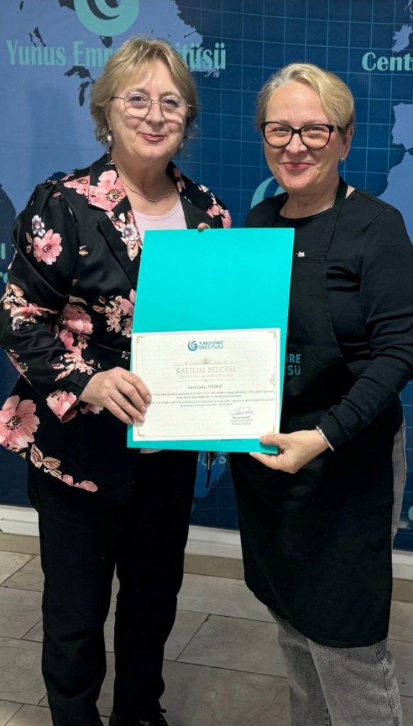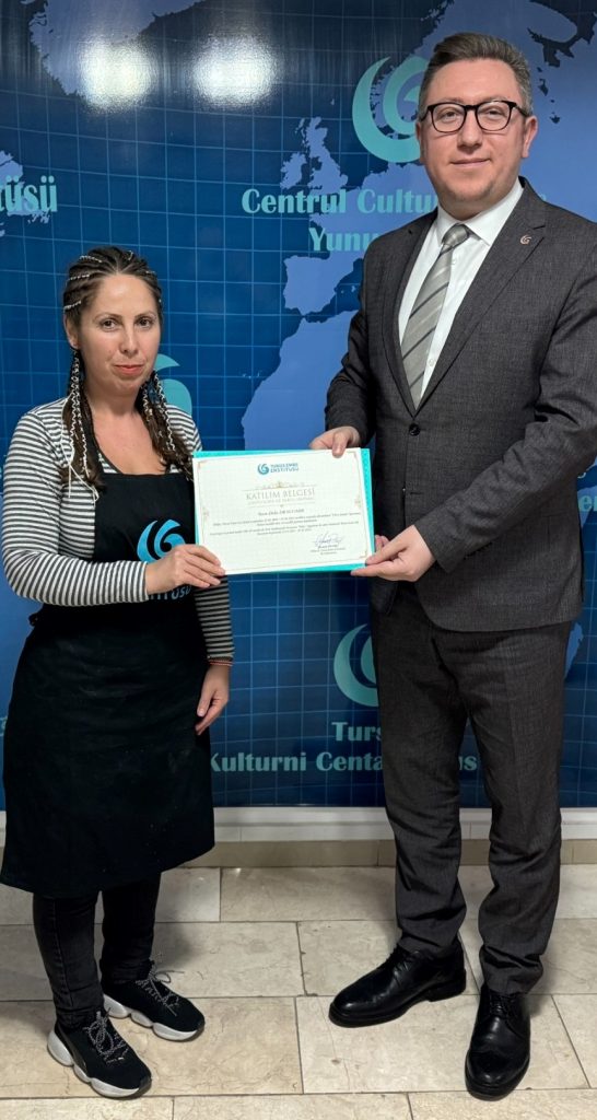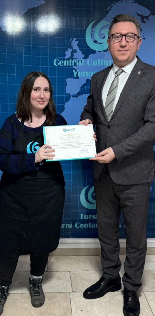 2024 yılının birinci dönemini başarıyla tamamlayan katılımcılara sertifikaları düzenlenen törenlerle Yunus Emre Enstitüsü Romanya Müdürü Mustafa Yıldız ve ebru sanatı eğitmeni Rodica Parvan tarafından takdim edildi.