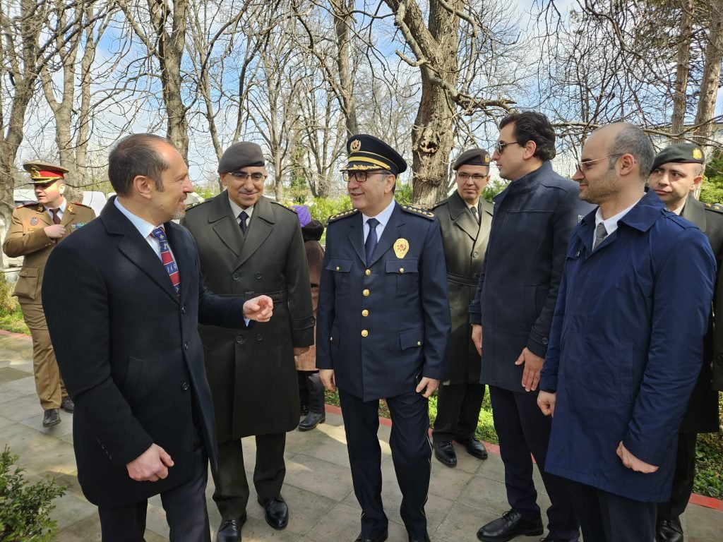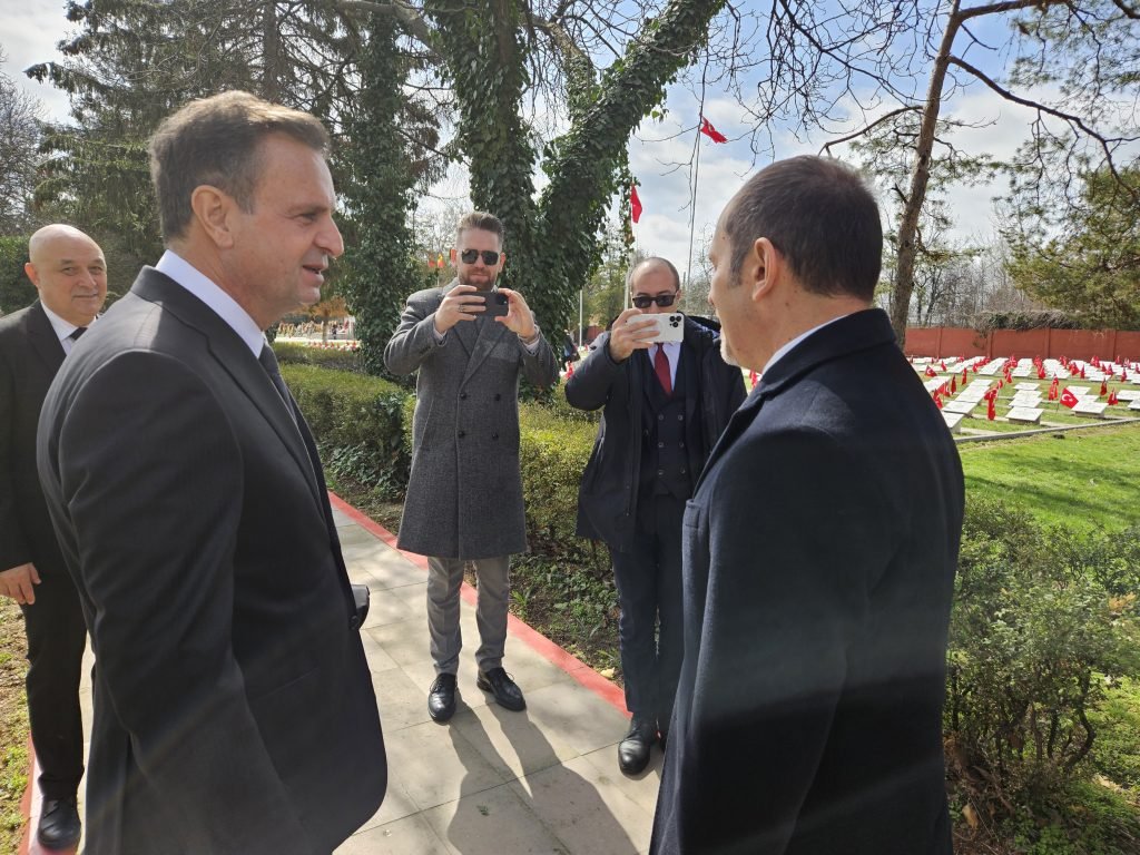 Şehitlere saygı duruşu ve iki ülke istiklal marşlarının okunmasının ardından şehitlik Anıtı’na çelek bırakılarak saygı duruşu gerçekleştirildi.
