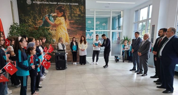 Öğrenciler tarafından ayrıca ziyaretin anlamına ilişkin hediyeler takdim edildikten sonra Okul hatıra defterine düşüncelerini de yazan Çevik, Twiter’den yaptığı açıklamada başarılı maarif okulları için: “Arnavutluk programımızda Maarif Okullarını ziyaret ederek yönetici ve eğitimcileriyle görüştük. Fiziki altyapısıyla, eğitimci kadrosuyla bizleri gururlandıran okulumuzun tüm kadrolarına misafirperverlikleri için teşekkür ediyorum” ifadelerini kullandı.