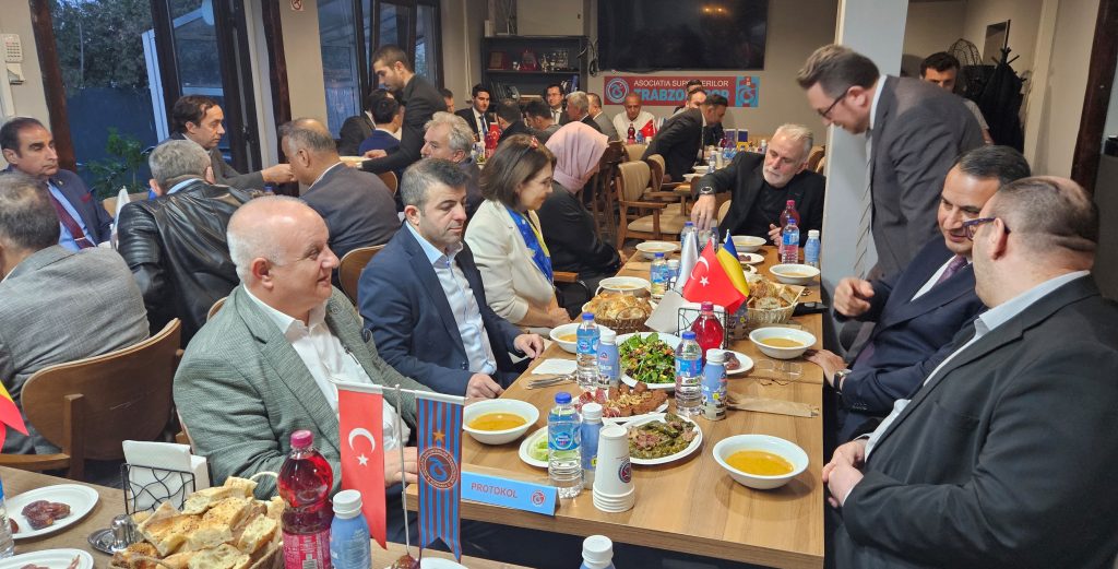 Pazartesi günü verilen Romanya Trabzonsporlular Derneği Başkanı Mehmet Fazlıoğlu, önceki dönem başkanı Süleyman Bostan ve diğer Dernek yetkililerinin ev sahipliği yaptığı resmi iftar yemeğine, Bükreş Büyükelçisi Özgür Kıvanç Altan, Büyükelçiliğe bağlı kurum ve kuruluş temsilcileri, DEİK Türkiye Romanya İş Konseyi Yürütme Kurulu Üyesi Ömer Süsli, DTİK Romanya temsilcisi Güven Güngör, TİAD Başkanı Ufuk Tandoğan, Başkan Yardımcısı Gürsel Öztürkmen, MÜSİAD Romanya Temsilcisi Cem Aksoy ile Galatasaraylılar Derneği, Beşiktaşlılar Derneği ve diğer davetliler katıldı.