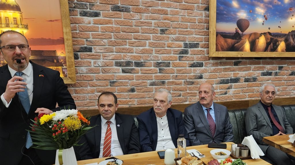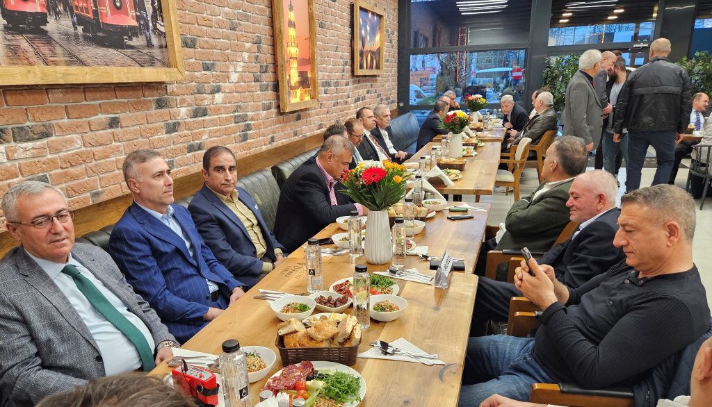 Romanya’da endüstriyel gelişim açısından yıldızı parlayan vilayetlerden biri olan Prahova Vilayetinin merkezi kenti Ploieşti’de iş adamlarımızdan Kırıkkaleli Adnan Güral, Trabzonlu Cemal Birinci, Kırşehirli Haydar Erdoğan geniş katılımlı iftar yemeği verdi.