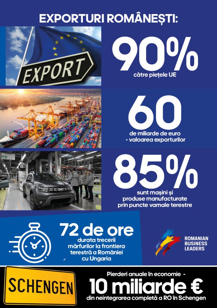 Romanya’nın ihracatının neredeyse yüzde 90’ı, yaklaşık 60 milyar avro değerindeki Avrupa Birliği pazarlarına gidiyor; bunun yüzde 85’i kara gümrük noktalarından taşınan otomobiller ve mamul ürünlerden oluşuyor.
