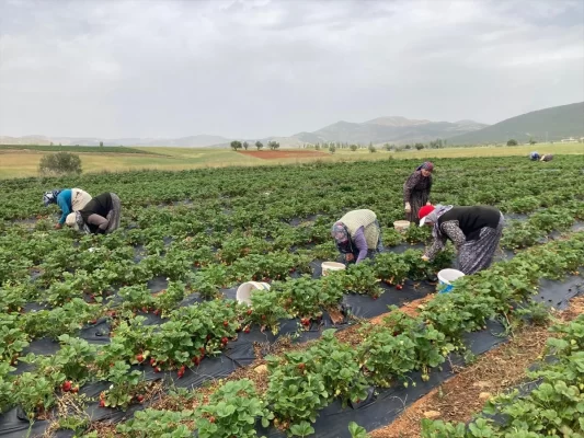 Konya’ya 90 kilometre uzaklıkta Hüyük ilçesinde yaşayanlar, çilek üretimiyle ekonomiye katkı sağlıyor. Yaklaşık 15 yıl önce dar bir alanda ekimi yapılan coğrafi tescil belgeli çilek, zamanla ekim alanlarının genişlemesiyle ciddi bir de istihdam kapısı oluşturdu.
