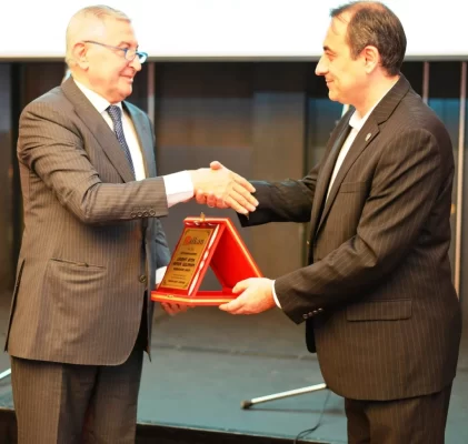 (Foto Arşiv: 2019 yılında Romanya Yeminli Mali Müşavirler ve Mali Müşavirler Odası Başkanı Prof. Dr. Robert Şova’nın elinden ödül alırken)