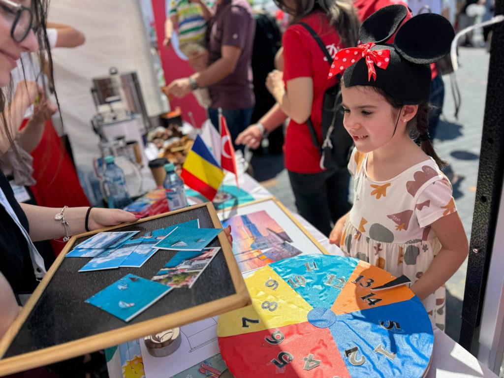 Etkinlikte Yunus Emre Enstitüsünün standında çocuklar için örnek Türkçe kursu atölyesi, oyunlar ile Türkçe, bilgi yarışmaları, Ebru Sanatı atölyesi düzenlendi. Misafirlere stantta sponsorlar desteği ile tedarik edilen simit, poğaça, baklava ve atıştırmalık diğer ürünlerle birlikte Türk çayı ve kahvesi de ikram edildi. Yunus Emre Enstitüsü standını ziyaret eden T.C. Bükreş Büyükelçisi Sayın Özgür Kıvanç Altan, Yunus Emre Enstitüsü tarafından sponsorların desteği ile hazırlanan hediye çantalarını çocuklara takdim etti. Düzenlenen etkinlikten dolayı yetkilileri tebrik eden Altan, çocuklarla hatıra fotoğrafı çektirdi.