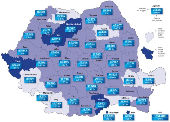 Romanya’da bu yılın mayıs ayında sanayi ve inşaat sektörlerinde çalışan sayısı geçen yılın aynı ayına göre yüzde 0,04 ila 2,70 oranları arasında arttı. Ulusal İstatistik Enstitüsü’nün (INS) verilerine göre en büyük artışlar Ilfov, Cluj ve Giurgiu’da gerçekleşti. En küçük artışlar Mehedinţi, Maramureş ve Neamţ’te oldu. Tulcea’da ise düşüş görüldü. Böylece 20 ilde iki sektördeki toplam çalışan sayısı yüzde 1’in altında artarken, yıllık en yüksek artış yüzde 2,7 oldu. (ZF)