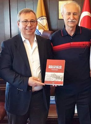 “Balkan Harbi’nde Muhacir Olmak” adlı eserini, kendisinden önceki Rektör Prof. Dr. Erhan Tabakoğlu’na takdim ederken