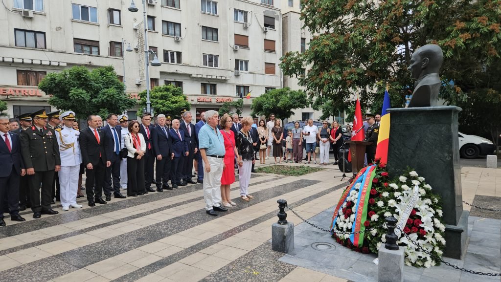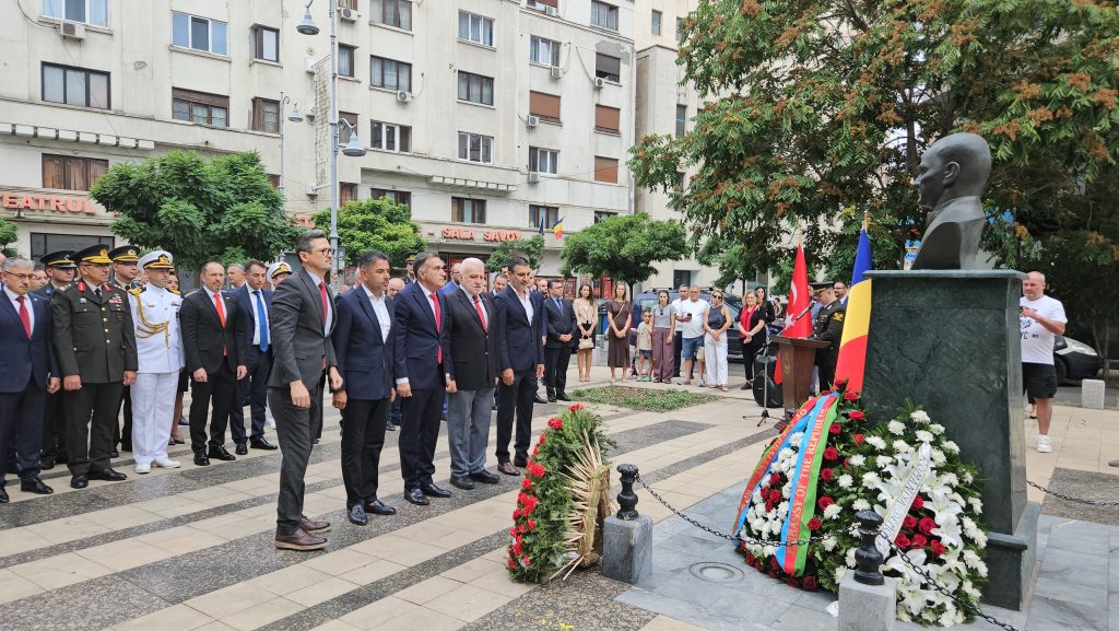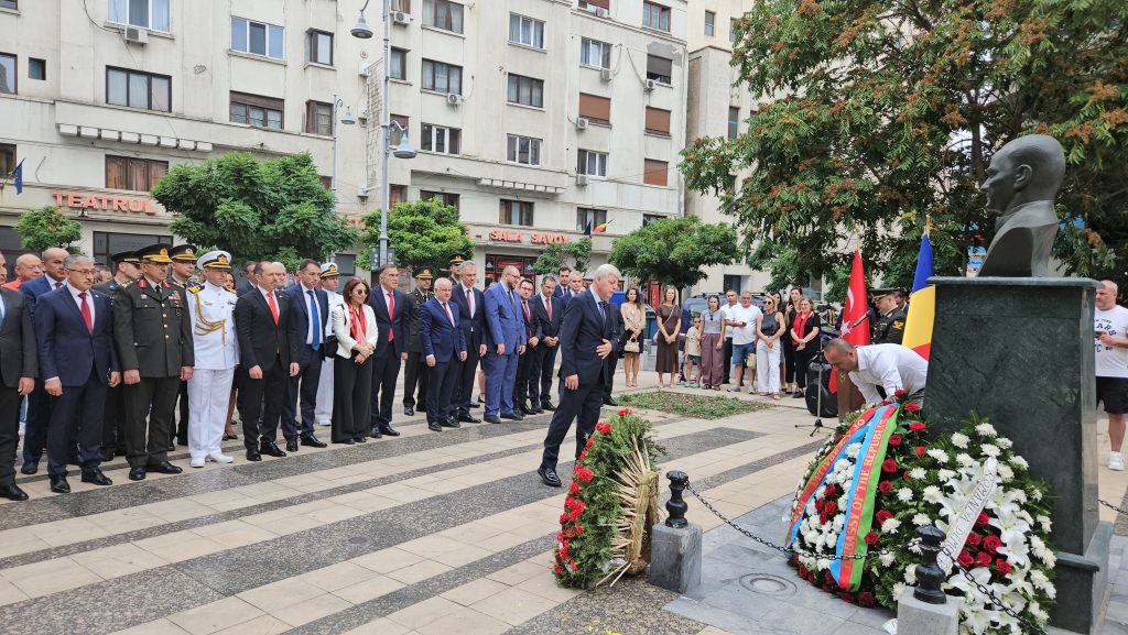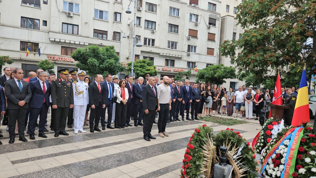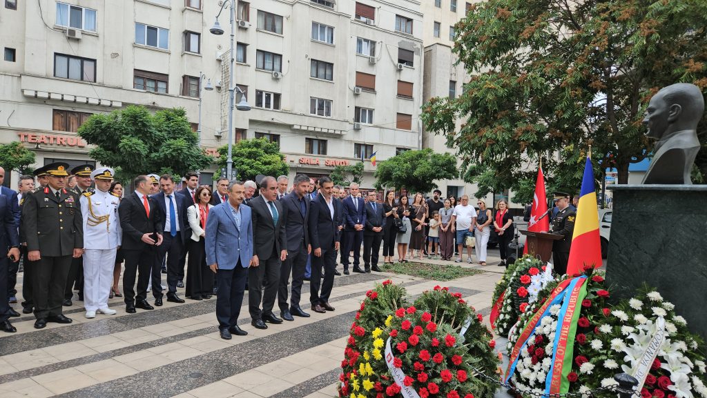 Buradaki Törene, Büyükelçi Özgür Kıvanç Altan önderliğinde Bükreş Silahlı Kuvvetler ve Deniz Ataşesi Dz. Alb. Yavuz Alper Kara, Sibiu’daki NATO Çok Uluslu Güneydoğu Kolordusu Komutan yardımcısı Tümgeneral Abdullah Soydemir ve Romanya’daki diğer NATO birimlerinde görev yapan Türk askeri temsilcileri, Azerbaycan Bükreş Büyükelçisi Gudsi Osmanov diğer Büyükelçilik mensupları, Türk kamu kuruluşlarının temsilcileri, Türk ve soydaş sivil toplum kuruluşları temsilcileri ile vatandaş ve soydaşlar katıldı.