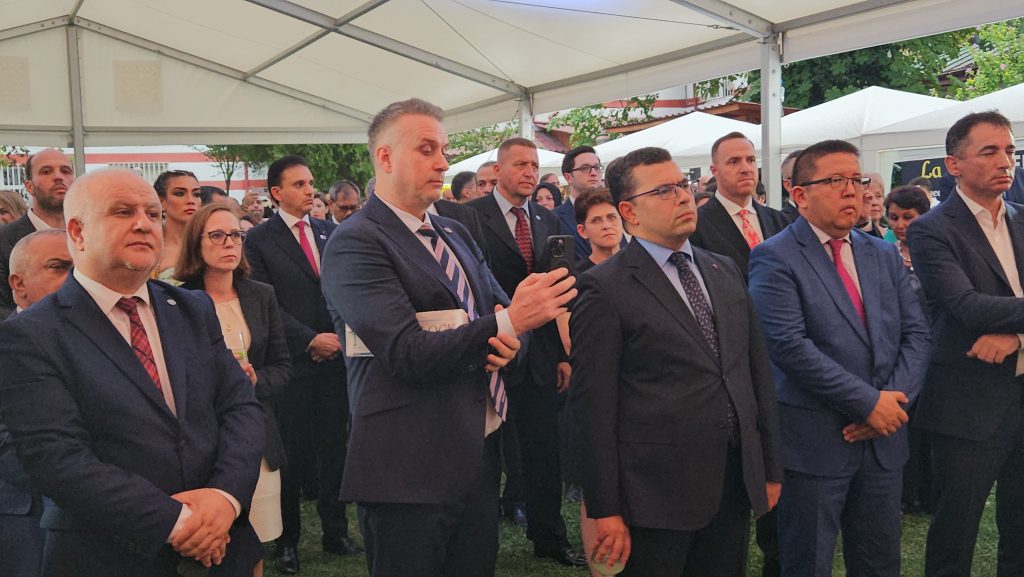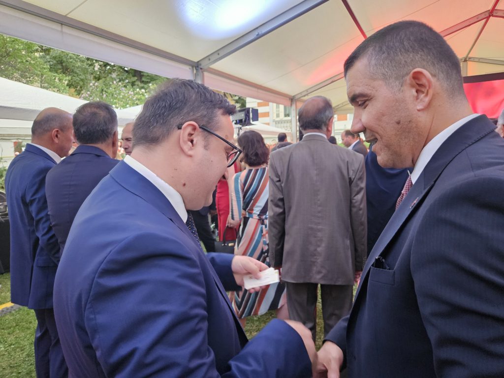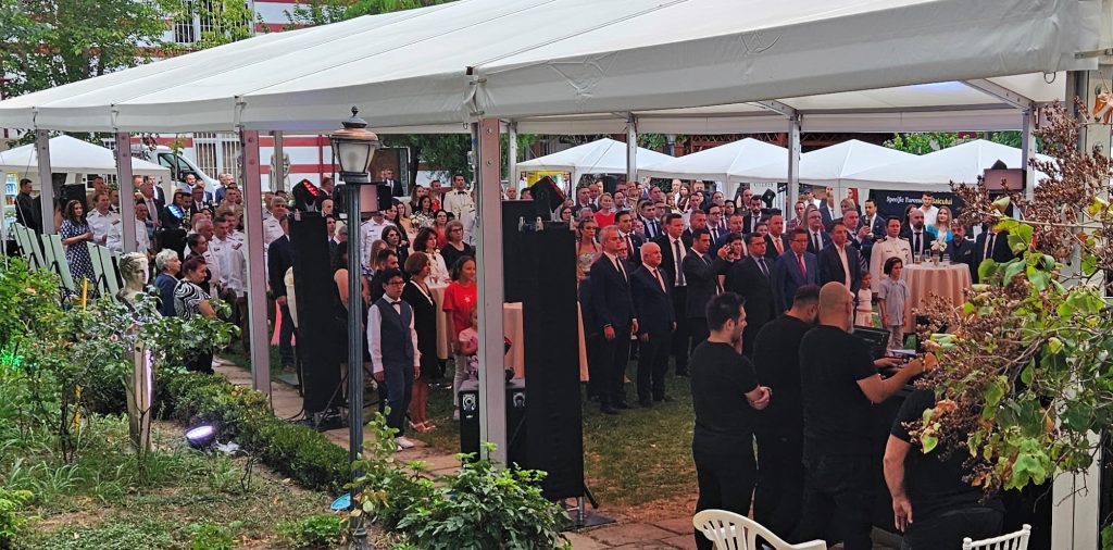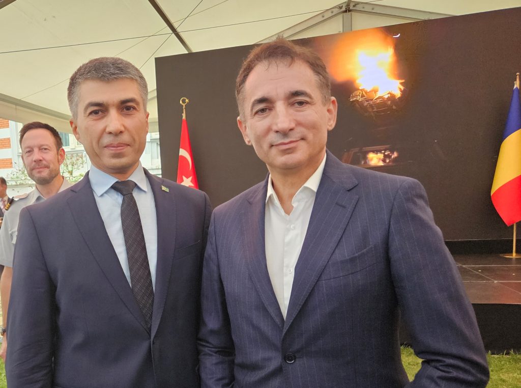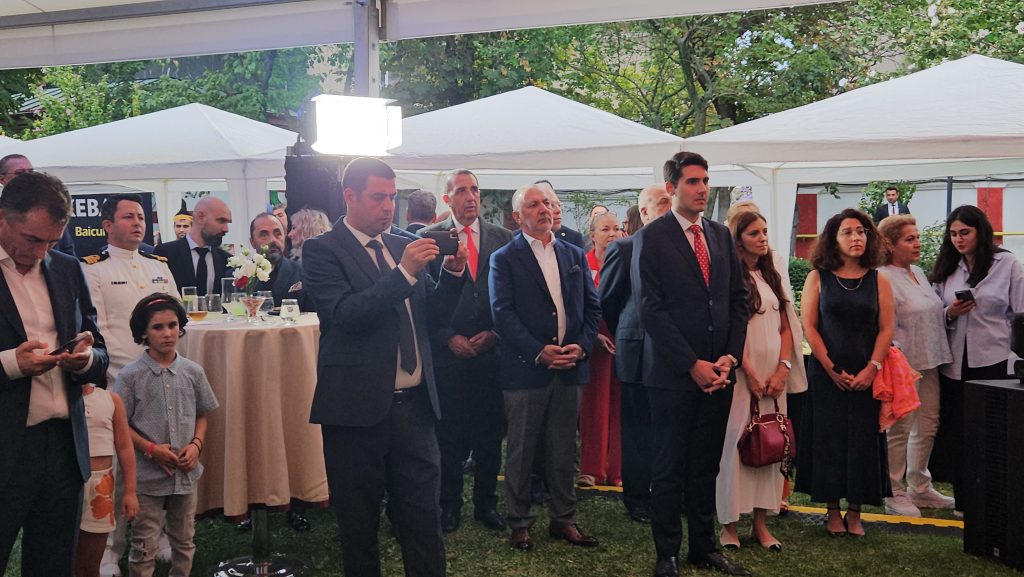 Büyükelçilik ikametgahında verilen resepsiyonda Büyükelçi Özgür Kıvanç Altan, Bükreş Silahlı Kuvvetler ve Deniz Ataşesi Dz. Alb. Yavuz Alper Kara ve eşleri ile Baş Katip Ufuk Türkkan davetlileri karşıladı.