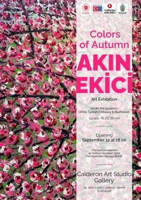 SONBAHAR RENKLERİ” adını taşıyan sergi Akın Ekici’nin üçüncü devlet sergisi niteliğini de taşımakta. Açılışa Bükreş Büyükelçimiz Sayın Özgür Kıvanç Altan, eşi Sayın Aslı Altan, sanatçının eşi Sibel Ekici, Ünlü ses Sanatçısı İsmail Özkan, eşi Esra Özkan, Romen Kültür Bakanlığı yetkilileri, TİAD Türk İş Adamları Derneği Başkanı Ufuk Tandoğan, Bükreş’te bulunan muhtelif ülkelerin Büyükelçileri, diplomatik misyon şefleri, bir çok Türk ve Romen iş insanı, Türk ve Romen sanatçılar ve bir çok sanatsever katıldı.