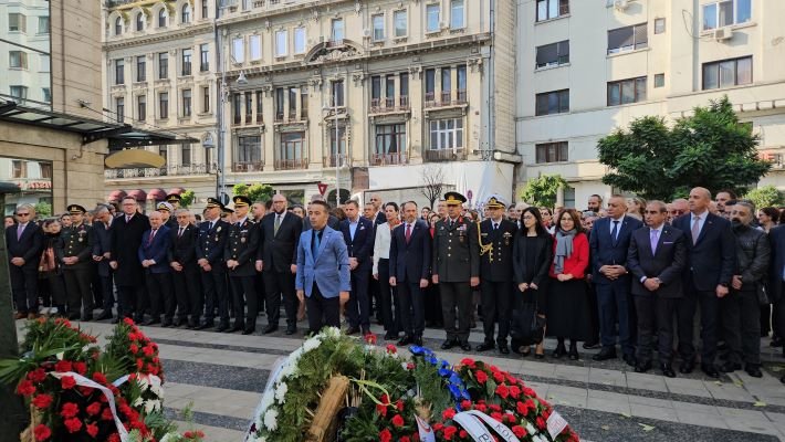 Tören, saygı duruşu ve milli marşımızın okunması ile başladı. Daha sonra Türkiye Cumhuriyeti Bükreş Büyükelçisi Özgür Kıvanç Altan Atatürk Büstü’ne çelenk koyarak saydı duruşunda bulundu.