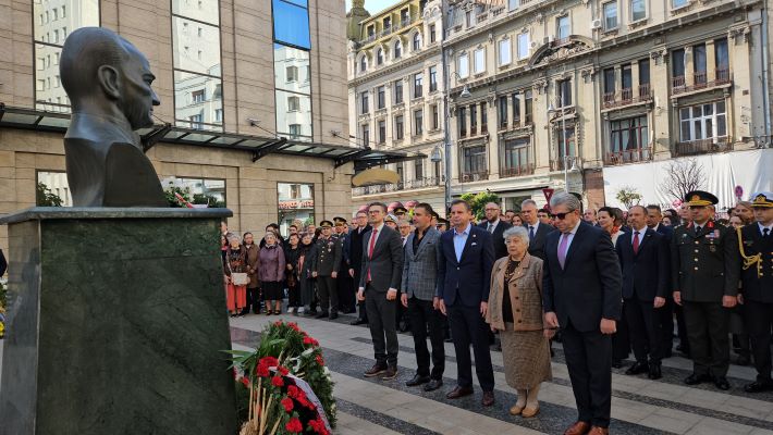 Bükreş’in en işlek caddelerinden biri olan Zafer Yolu (Calea Victoriei) caddesi üzerindeki Atatürk Büstü başında gerçekleştirilen törene vatandaşlar ve soydaşlar yoğun ilgi gösterdi. Törene Sibiu’daki NATO Çok Uluslu Güneydoğu Kolordusu Komutan yardımcısı Tümgeneral Abdullah Soydemir ve Romanya’daki diğer NATO birimlerinde görev yapan Türk askeri temsilcileri ile Büyükelçiliğe bağlı kurum ve kuruluş temsilcileri de katıldı.