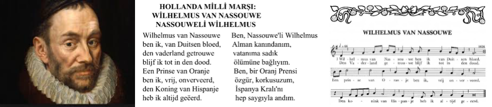 Hollanda’nın İstiklal Marşında, 80 yıl savaştıkları ülke için ‘İspanya Kralını hep saygıyla andım’ ve defalarca savaştıkları ve Kan akıttıkları Hitler’in Almanyası için ‘Kanım Alman kanı’ deniliyor.