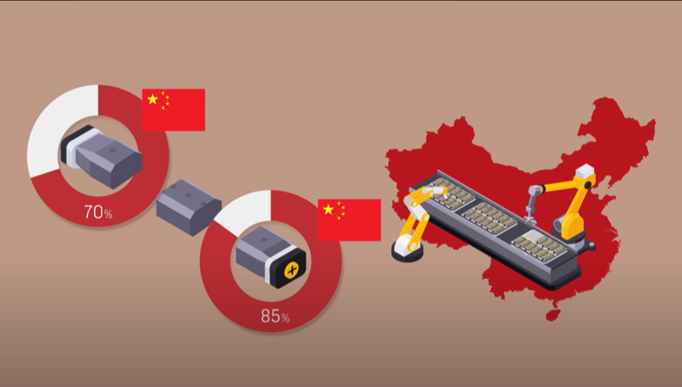 Şekil 3 – Çin uyguladığı strateji sonucunda bugün batarya hücrelerindeki anot ve katot üretiminde dünyanın en büyük üreticisi konumundadır. Bugün lityum-iyon bataryaların anotların % 85 ve katotların ise % 70’i Çin’de üretilmektedir.
