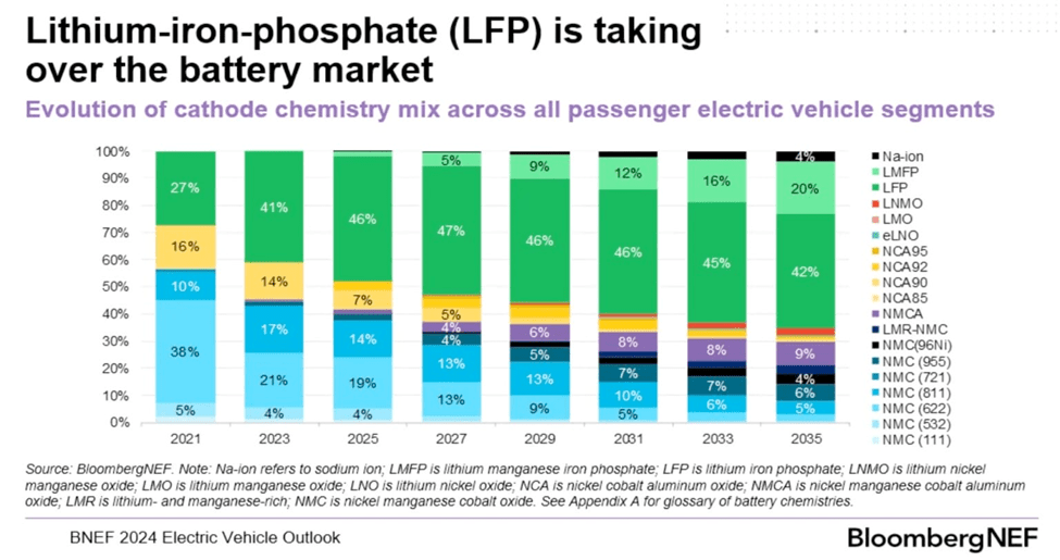 Elektrikli otomobillerin günlük hayata giriş sürecinden bir çok aşılması gerekli sorun olduğu bilinmektedir. 2010 yılına dönerek, o zamanın yayınlanan inceleme ve yorumlarına bakılırsa, elektrikli araçlarla ilgili en önemli sorunların öncelikle batarya fiyatları olduğunu ve peşi sırada da batarya şarj süreleri, şarj noktalarının mevcudiyeti, batarya teknolojisinin güvenilirliği gibi konuların sıralandığı görülmektedir. Bugün itibarıyla ise, bu dönüşümün olacağı kesinleşmesine karşın hem fiyat hem de tedarik bağımsızlığının öne çıktığı anlaşılmaktadır. Sanyi devrimi sonrası insan türünün enerji ihtiyacını karşılamak için çok kökten bir takım değişikler yaşanmaktadır. Güneş enerjisinden veya rüzgardan elde edilen karbon emisyonu düşük ve yenilenebilir enerjilere bağlı teknolojiler hızla gelişmektedir. BloombergNEF’in Verdiği grafikte de görüldüğü gibi önümüzdeki dönemde otomobillerde bataryalarında LFP teknolojisinin öne geçmesi büyük bir olasılık olarak görülmektedir. Bu dönüşümün Bloomberg analistlerinin öngördüğü hızda olup olmayacağını yine yaşayarak görebileceğiz.
