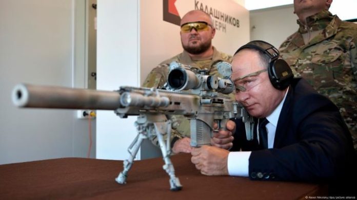 Vladimir Putin Rus üretimi silahları incelerken. Vladimir Putin Rus üretimi silahları incelerken.