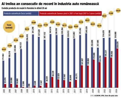 Böylece Romanya’da otomobil üretimi, Avrupa endüstrisi için özellikle zor ve iddialı bir yıl olan 2024’te yeni bir rekora imza atmış oldu. 2024’teki üretim 2023 yılına kıyasla yüzde 9,17’lik bir artışa karşılık geliyor.
