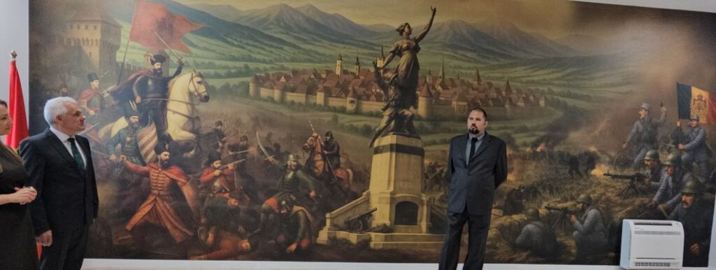 Etkinlik, tarihçi Adrian Șchianu’nun, odanın dekoru ve 1599’da “Cesur Mihail” olarak bilinen Mihail Viteazu tarafından kazanılan Șelimbăr Muharebesi’ni tasvir eden duvar kâğıdı hakkında yaptığı bir sunumla başladı. Bu an, Transilvanya’nın Eflak ile ilk birleşmesini simgeliyor ve görüntü, kentin tarihi geçmişine bir övgü niteliği taşıyor.