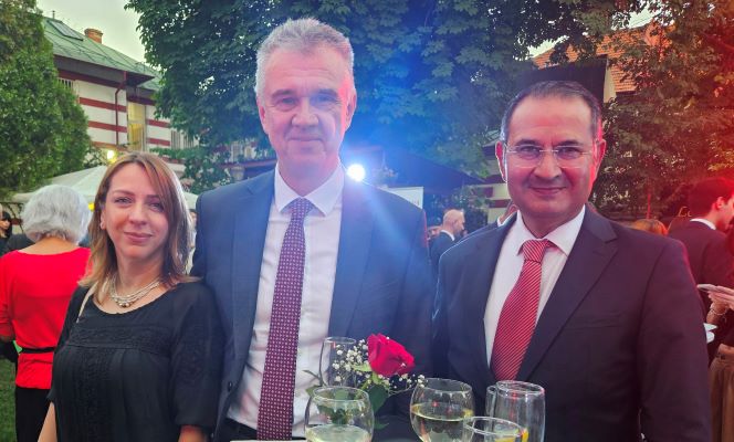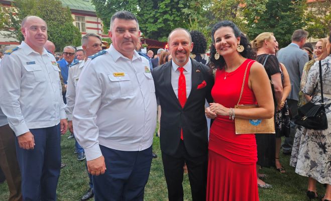 Büyükelçilik ikametgahında verilen resepsiyonda Büyükelçi Özgür Kıvanç Altan, Bükreş Silahlı Kuvvetler ve Deniz Ataşesi Dz. Alb. Yavuz Alper Kara ve eşleri davetlileri karşıladı.