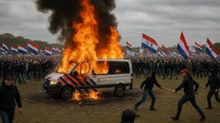 Birçoğu siyah giyinen ve Hollanda bayrakları ile aşırı sağcı gruplarla ilişkili bayraklar taşıyan göstericiler polise taş ve şişe fırlattı ve devriye araçlarından birini ateşe verdi. Polis de kalabalığı dağıtmak için göz yaşartıcı gaz ve tazyikli su kullandı.