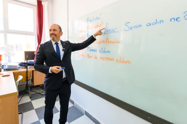 “Güzel dilimiz Türkçeye Romanya’da gösterilen bu yoğun ilgi bizleri çok mutlu ediyor. Aslında bu ilginin temelinde Türkiye ve Romanya arasındaki köklü dostluk yatıyor. Yüzyıllara dayanan ortak tarihimiz, kültürel bağlarımız ve ticari ilişkilerimiz bugün bu sıralarda Türkçe öğrenmek isteyen pırıl pırıl çocuklarımızda karşılığını buluyor. Bugün ilk dersi bizzat vermek benim için çok özel bir tecrübe oldu. Öğrencilerimizin yüzlerinde gördüğüm heyecan, onların öğrenmeye ne kadar istekli olduklarını gösteriyor. Türkçe sadece bir dil değildir aynı zamanda Türkiye’nin zengin kültürüne, tarihine, müziğine, mutfağına ve misafirperverliğine açılan bir kapıdır.