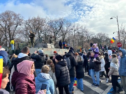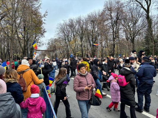 Soğuk havaya rağmen meydanı dolduran Romanyalılar, millî gün coşkusunu bayraklarla, marşlarla ve alkışlarla yaşadı.