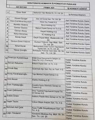 Yapılan seçimlerde Türkiye Romanya İş Konseyi yedek üyeliklerine seçilenler ise şu isimlerden oluştu: