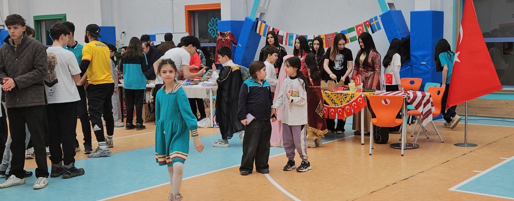 Okul öğretmenlerinin nezaretinde gerçekleşen etkinliğe yüzlerce öğrenci katılarak, başta mutfak ürünleri olmak üzere kendi uluslarının kültürel değerlerini tanıttılar.