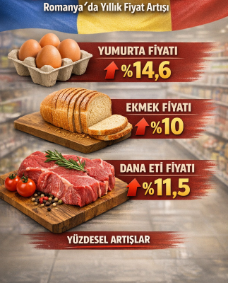 * Romanya’da yıllık bazda yumurta fiyatı yüzde 14,6, ekmek fiyatı yüzde 10, dana eti fiyatı ie yüzde 11,5 arttı