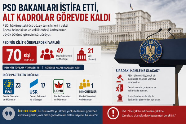 *BÜKREŞ – Romanya’da Ilie Bolojan hükümetinde Sosyal Demokrat Parti’nin (PSD) üst düzey temsilcileri istifa ederken, partinin alt kadrolardaki varlığı büyük ölçüde sürüyor